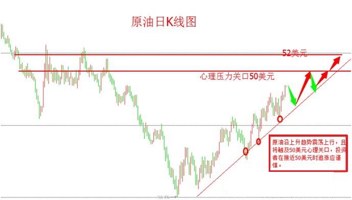 原油/沥青从四小时走势图来看,均线系统虽整体呈多头排列,5日均线向上贯穿10日均线形成金叉继续上行,且5日、10日、22日等均线一致向上运行,K线价格沿5日均线向上运行,目前在48美元下方高位整理。MACD指标在零轴上方继续向上延伸,红色动能柱仍在不断放量,KDJ指标聚拢走缓且进入超买区。综合来看,K线价格受下方5日等均线强力支撑,但谨防前期高点强力压制。若有不解,可前来详询。