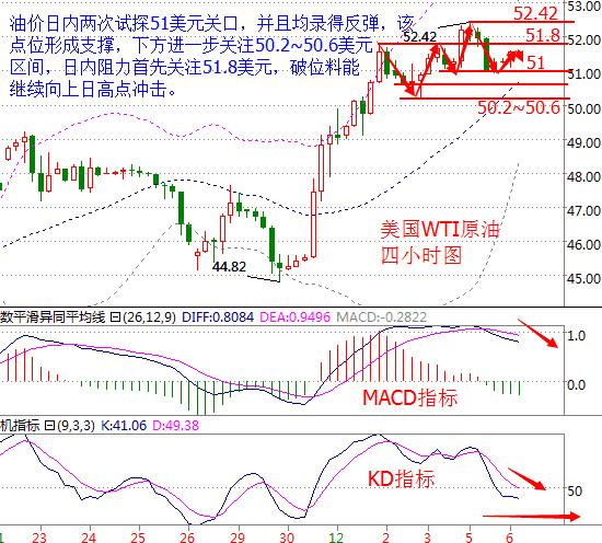 b.建议下方50.2美元不破的前提下,可在50.6美元附近做多,目标看51.8美元上方,止损在50美元下方;