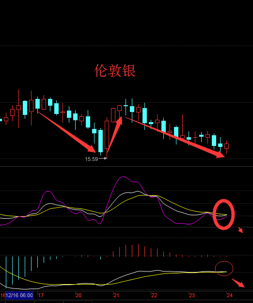 白银方面:近期的走势相对比较偏弱,持续走低,日线收阴,四小时形成下降通道,整体行情仍然偏弱势,近期的思路以震荡看待,前期的低点15.6一线的支撑,上方则看16.2一线压力位,后市以反弹做空为主,低多辅助,白银走势虽偏弱,但是下跌空间有限。4小时图上,布林带系统呈空头向下运行趋势,K线沿布林带下轨向下运行,关注下方15.6美元支撑,MACD指标零轴下方快慢线走缓聚拢,红色动能柱缩量,KDJ指标向下发散运行,且处于超卖区间。盘中实时指导添加柯灯本人微信免费咨询。