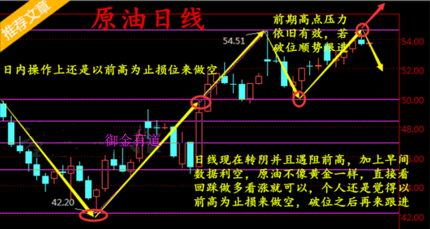 昨天油价还是在上方高点承压回落,原油也进入关键期了,突破前高就还能涨,否则就将迎来短期回调,年线收好也是定局,明年应为减产协议,肯定也会有新高,但是短期行情可能进入调整期,日线现在转阴并且遇阻前高,加上早间数据利空,原油不像黄金一样,直接看回踩做多看涨就可以,个人还是觉得以前高为止损来做空,破位之后再来跟进。(专业指导溦信ID:xc75886),主要对原油、白银、天然气,股票,微盘等大宗商品行情分析专业指导。