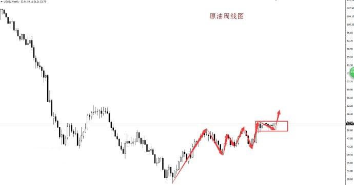 原油以已经在高位连续震荡两个月的时间,从形态上看原油突破上方54.7价位构成多头趋势,下周重点关注下方52价位的支撑,操作建议逢低买入为主,上方关注54.7价位的支撑,如果原油突破54.7价位,买多头行情得到确认,原油将会迎来新的一轮上升行情。实时指导V- 信:764155754