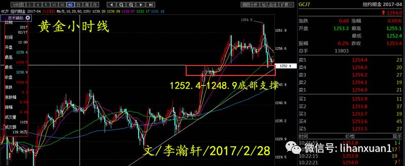 黄金操作策略:1250多,止损1248,目标看至1260一线