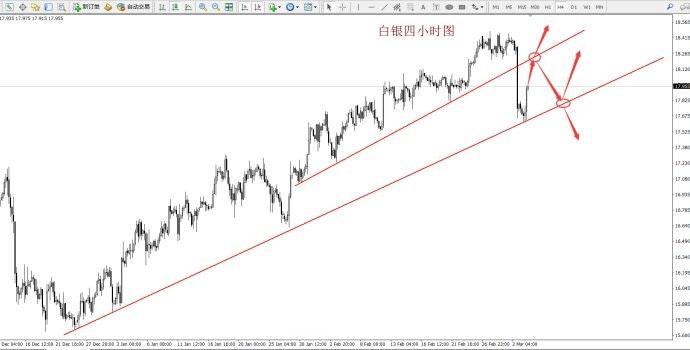 白银本周整体是处于高位盘整,在黄金走低的同时,白银表现出抗跌的迹象,随后周四尾盘的跳水,直接从18.3回落到17.6进行补跌,周线高位收大阴,行情不乐观,日线昨日虽有反弹,但是,周四的大阴线,足以把走势拉向空头的局面,白银后市仍有望进行探底,本周受美联储加息预期影响,趋势上已经偏空运行,下周思路上仍然以反弹空为主,上方关注18-18.1一线阻力位,下方18.6一线支撑。
