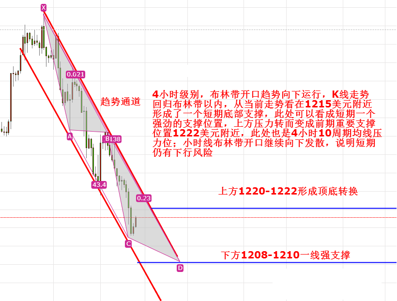 无论是周线级别还是日线级别,黄金近期空头趋势明显.价格的连续走低疲软导致日线三只乌鸦形态即将形成,四小时盘面,自上周触及1263.8受阻下跌以来,短线的下跌势头非常的明显,价格在跌破了四小时中轨支撑后转为了上方施压的阻力点,短线在屡次的测试后均遭受打压,目前来看有继续下探需求.而市场整体行情还是谨慎的看待周五非农的结果。不过目前无论从技术面还是消息面看,市场对美联储加息的可能性期望很高,即使说非农数据利好黄金,但是在之后的走势中,黄金也难以摆脱下行的风险.