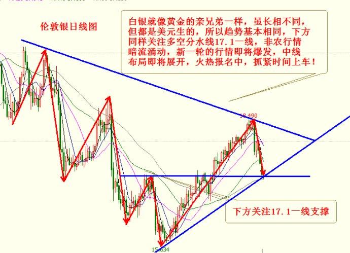 伦敦银也是与黄金共患难,下方需关注17.1一线的支撑,当然技术面需与数据结合起来分析,不过从周四的行情来看,万事俱备只欠东风,此次非农布局已有万无一失的策略,笔者今晚会在实盘中给出精准策略,无论你现在手上有套单还是之前操作的不理想,非农将是一次逆天改命的机会,笔者薇-信:764155754,会在实盘中给出精准策略助你扭亏为盈。