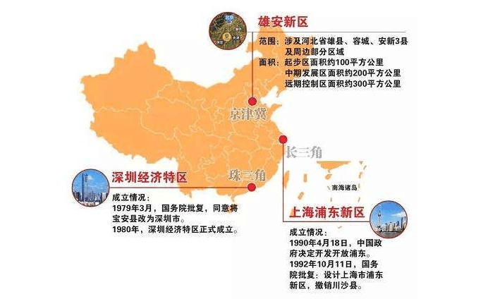 雄安新区,涉及河北省雄县、容城、安新3县及周边部分区域,地处北京、天津、保定腹地,区位优势明显、交通便捷通畅、生态环境优良、资源环境承载能力较强,现有开发程度较低,发展空间充裕,具备高起点高标准开发建设的基本条件。这是继深圳经济特区和上海浦东新区之后又一具有全国意义的新区。