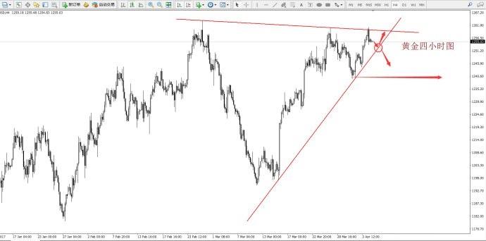 黄金昨日白盘震荡走高,从四小时线也可以看出来,黄金呈现多头排列走势,所以昨日明确提示有试探上方1260-1263一线的可能,晚盘冲高至1261后,行情再度大举下挫,也就是说明了上方的阻力仍然较强势,若受阻短时间就会继续回落调整,四小时线收大阴,并且短线有形成双顶的迹象,行情有望进一步走低。