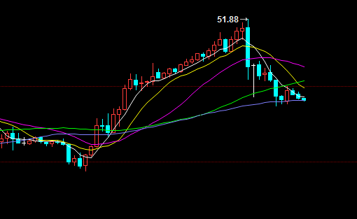 1,国际原油价格见51.7美元附近做空,止损52上,目标50.8
