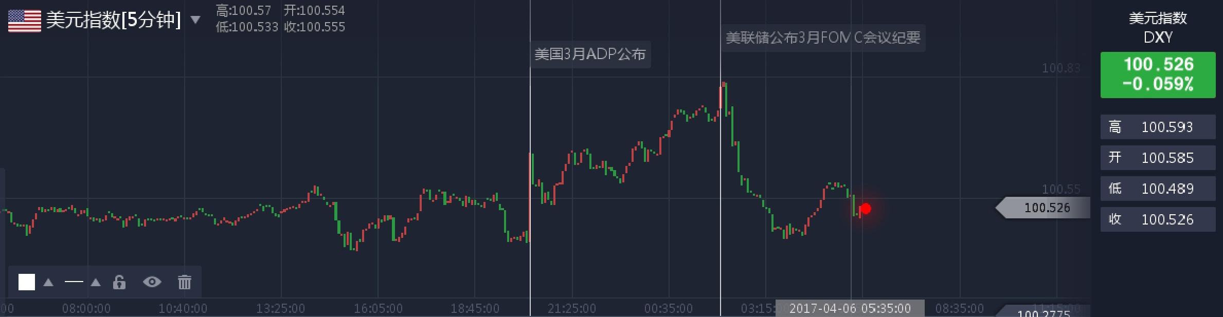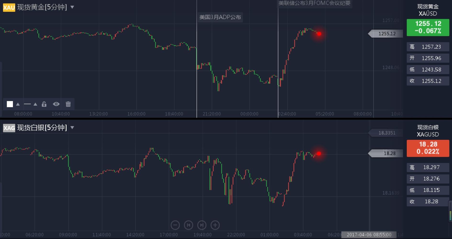 周三(4月5日),因美国3月ADP新增就业数据远超预期提振了美元及美债收益率,风险资产吸引力上涨,黄金期货价格收盘下跌,为四个交易日以来首次走低。随后美联储发布3月FOMC会议纪要,黄金先是保持跌势,但随后暴力拉升,收复大部分失地。