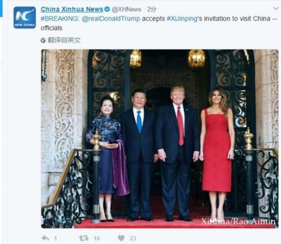 美国总统特朗普接受国家主席习近平提出的访华邀请。
