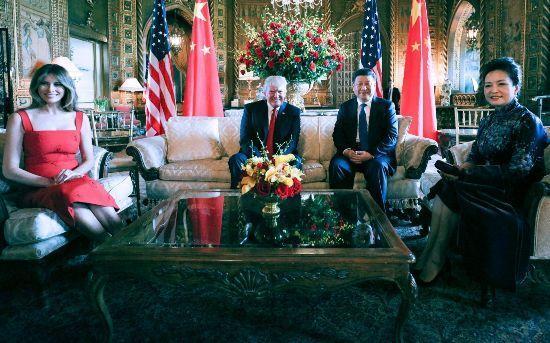国家主席习近平同美国总统特朗普举行中美元首会晤。图为海湖庄园会晤。