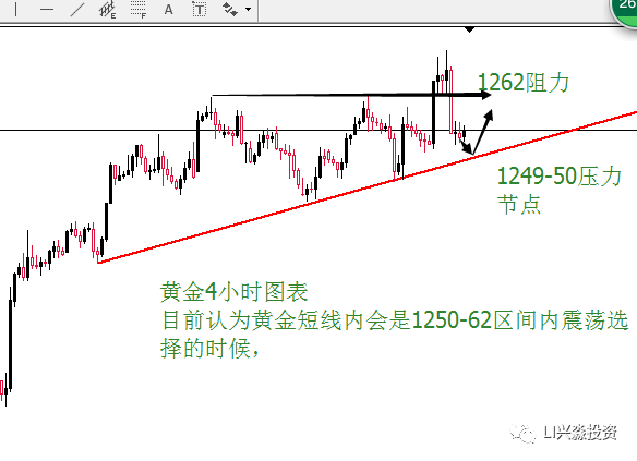 目前还是不能认为黄金已经直接转势看空了,因为1249-50附近是我认为的特别关键的位置,这里不跌破那么还是有继续反弹的机会。跌破了就可能是看一次回撤的机会。这样的走势耐心观察1249-50压力节点的得失再说。直接点说就是触及1252附近考虑做多一次,跌破1249后止损在考虑做空。