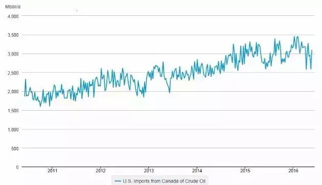 考虑到连续的进口量偏低,当前部分场内人士开始怀疑美国原油进口量是否已经开始进入回落通道。有市场人士指出,这更可能是VLCC卸货时间表同加拿大火灾供应中断互动的一个结果,暂时还没有迹象表明美国原油进口相比今年1-4月份将会下降。如果用红色虚线将加拿大5月第二周的进口突降的量补入美国原油进口均值曲线,可以看出美国原油进口量的曲线同2016年1-4月份的进口曲线完全吻合。