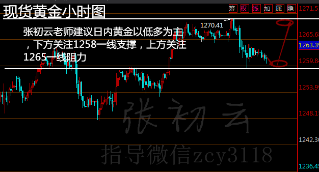 昨日行情波动比较大,最高触及1270,最低到了1259一线,目前黄金仍在多条趋势线的交叉点之上(1260附近)展开幅度较大的震荡,此处为重要的多空博弈关口,如果失守黄金有望走一波加息前的预期行情,甚至有可能向1250附近靠拢,如果企稳,就有可能再行上攻。昨日黄金行情虽然拉出了近期的新高,但并未有效站稳,亚盘走高,欧盘回落,美盘并未延续,美盘在PCE和个人指出数据利空下,顺势下跌,黄金下挫1258一线支撑,高于前一次低点1254位置,说明多头的格局还没有破坏。所以张初云老师建议日内黄金以低多为主,下方关注1258一线支撑,上方关注1265一线阻力。张初云老师建议以回落做多为主,轻仓空单为辅,大家可以关注张初云老师每日更新建议,及时把握市场脉搏。
