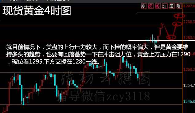 1、回踩1276-1278一线做多,稳健者1276持多,止损1273,目标上看1286,破位看1292-1295;