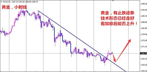 市场消息面来看,除了美联储即将加息这个最大利空因素之外,目前市场的地缘政治避险情绪较前两周有明显的回落,这两个因素导致黄金逐步承压下行。我们可以发现目前市场预期加息的影响已经越来越小,黄金下跌的速度正在减弱,有止跌企稳的迹象。莜芷在前面的文章说过,在美联储利率决议之前,黄金主要以1270-1258美元区间震荡为主。