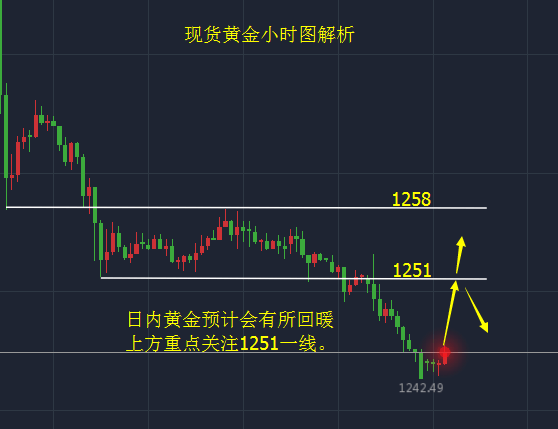 1、建议反弹1245-1246布局空单,止损4美元,目标看1240一线;