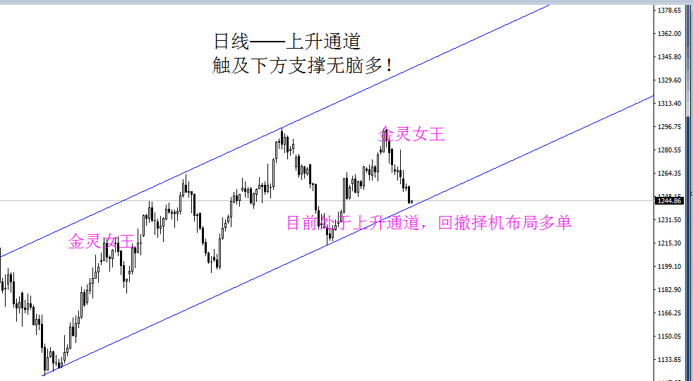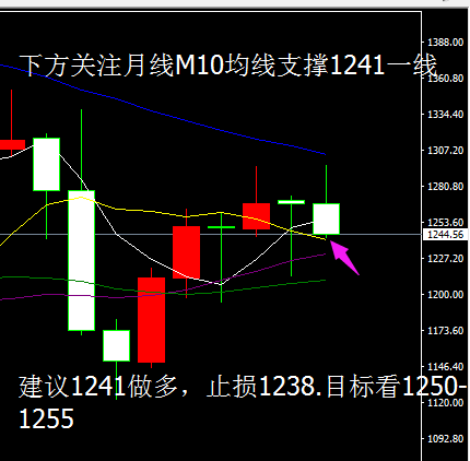 回顾下昨天的行情其实很简单,明显的空头趋势,昨天终于打破震荡格局,下方1251支撑破位,我也一直强调1251支撑破位,反弹都是做空的机会,实盘给予1253的现价空单也完美获利,下方做多的点位也很明确,就是1243一线,早间开盘直接下跌到1242.86一线,昨日也多次强调任意时段见1243做多,实盘也及时布局了1243的多单,昨天看空,今天的操作思路更加简单,看到前期支撑1243一线,今日黄金下方重点关注月线M10均线支撑1241一线,目前日线上升通道趋势支撑就在1241-1242附近,结合趋势和技术面来看,此点位的支撑十分强劲,.下方破位1241空间才会打开。我们也不能盲目看空,做多是没有任何问题的,大家做单带好止损止盈,控制好风险即可,具体加金灵女王773492399