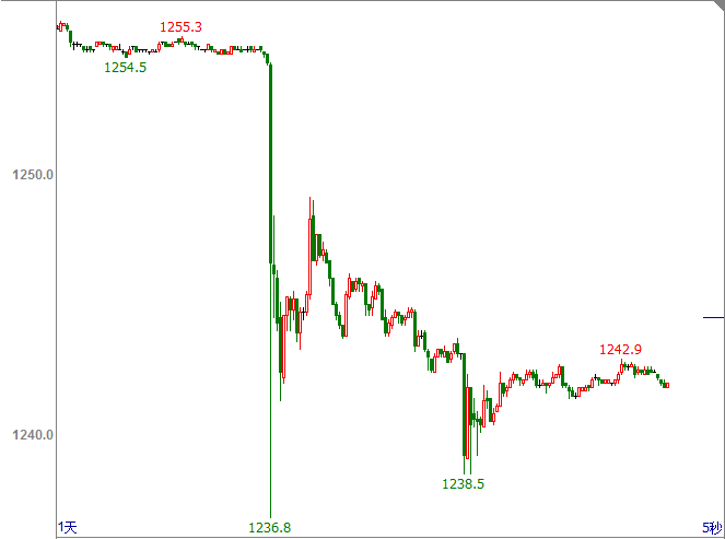 据市场传闻,此次黄金一分钟内跳水近20美元,可能是由于“胖手指”(由于交易员按键失误引发市场恐慌)错误触发,期货市场出现近2万手卖单造成金价闪崩。另一个原因可能是金价在跌破1250美元关口后,大量止损盘被触发,从而导致价格跳水。“神秘力量”导致黄金大幅跳水后,也将美元指数推上日内新高。