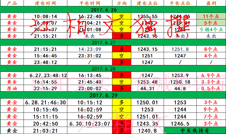 本周交易回顾:周一早间在布局之下抢一波回落短空,不料遇到胖手指事件获得盈利11个点,部分实仓跟进做单翻仓,还有一部分没有做懊悔不已,这种情况很少见能把握住这么一次,已经是万幸。周二行情也是有的诡异,江柏文老师早间认为行情不太稳定,没有给出单子,下午之后继续给了一波空单,完美获利。周三江柏文重点布局了一下原油EIA,与上周一样,完美止盈获利。周四接着周三的多单,看情况不对立马砍掉追空,惊险获利9个点,小幅回调之后,继续加仓进场,低位进场的客户也获利7个点。同时布局一个1240的中长线多单,江柏文威-信jbw135截止目前多单继续获利持有中。本周交易,不算完美,净获利润50个点,如果你不是单单操作,恰好跟了损单,那我无话可说了。很多时候多去总结一下老师所有的喊单,才会发现,并不是单子不准,而是你在老师喊单的同时犹豫不定,不敢进,不敢出的,对于这类投资者多想想自己原因或许会有更大的收获。现推出7月份非农中线布局指导(限周五、周六、周日),原先5万美金,现只要1-3万美金即可加入该次指导,名额有限,速来速来!江柏文团队期待你的加入,把握我们后期的行情。