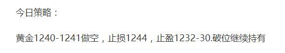 昨日盘中亚欧盘以阴跌为主,美盘快速下跌,在昨日文章中《日内黄金1240继续看跌》也多次提醒顺势做空,策略1240-41做空止盈1230,破位持有,获利颇丰。