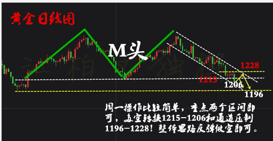 技术面日线图上,布林带开口下行,金价粘合下轨运行,下轨不断向下延伸,上方5日均线下穿10日均线形成死叉向下延伸,5日均线在上方1221附近对黄金展开压制,10日均线的压力位在1233附近,附图macd快慢线指标下行,下行动能柱放量中;四小时图上,布林带开口,江柏文威信jbw135布局指导昨晚非农的一波上下拉伸使得金价贯穿整个布林带,现在金价运行于布林带下轨下方,下轨在上方1216附近存在压力位,5日和10日均线在上方死叉向下,且分别在1218和1221附近对黄金展开压制,附图macd快慢线指标负值,且已成死叉之势,下行动能柱刚刚放量,空头趋势明显!下周一操作上江柏文建议以继续下看空,重点关注上方压力1216、1222、1230一线,下方关注支撑1207、1197、1194、1180一线。黄金操作建议: