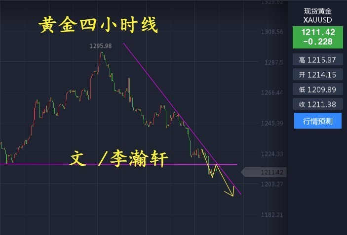 黄金触低后企稳,反弹中转阳,昨日市场其实只是延续了空头发展,只是没有触及1200众人所期待的关口位,之后的反弹导致低位做空的交易者有些措手不及,不过从盘中反弹以及势能表现来看并不占优势。日线上录得低位十字星,价格运行布林下轨上方,承压短期均线下方,且周期均线维持空头排列,短周期指标下行势能只是放缓,并未改变弱势威。信xlx012四小时上,昨日盘价格触低后连续反弹收阳,但盘中几度触及1215美元后没能实现上行突破,包括今早盘也是如此,接下来下探或收线穿过短期均线支撑,也就是1210下方,配合短周期指标的势能指引,今日盘就很难再看大幅度的反弹走势,因此今日趋势依旧保持高空。