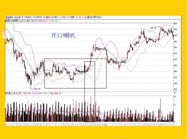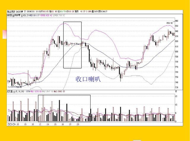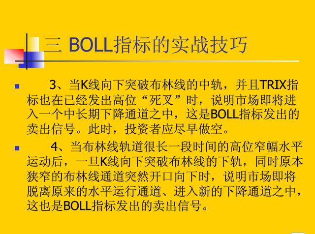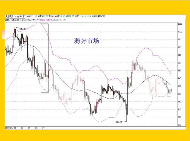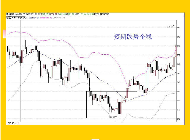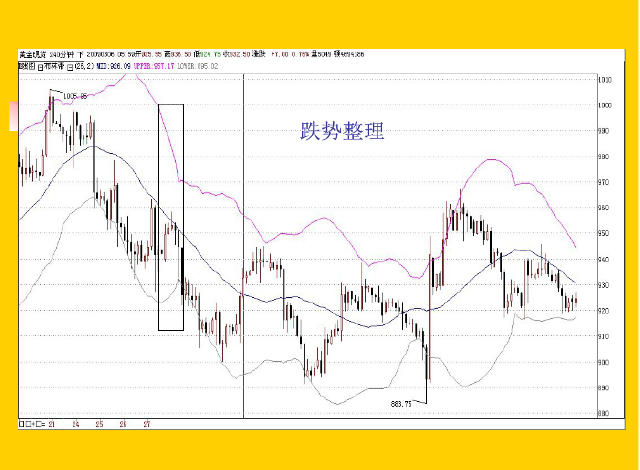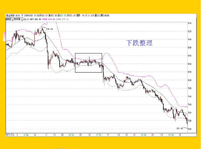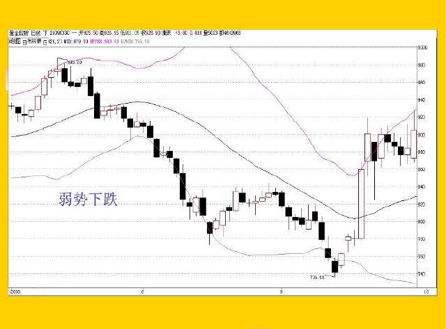 2、当布林线的上、中、下轨线同时向下运行时,表明市场的弱势特征非常明显,短期内将继续下跌,投资者应该坚决做空。