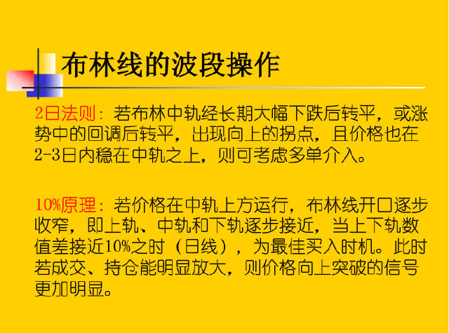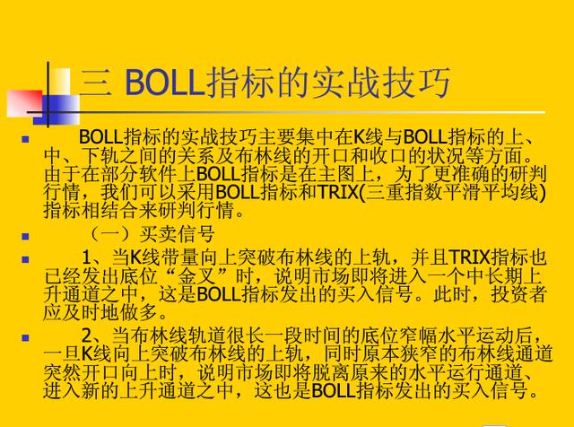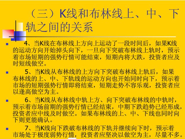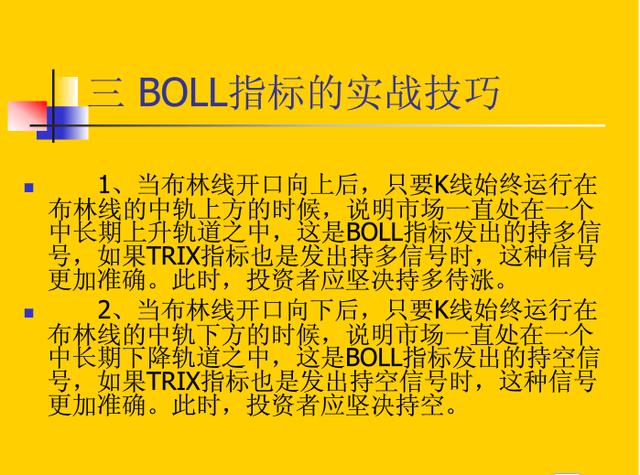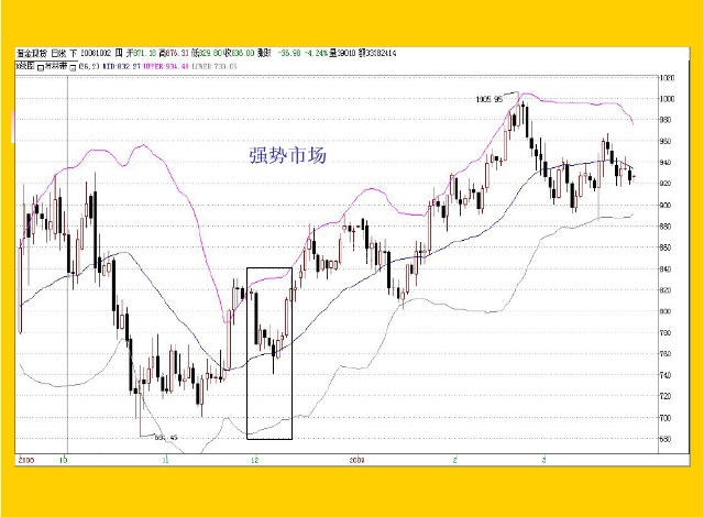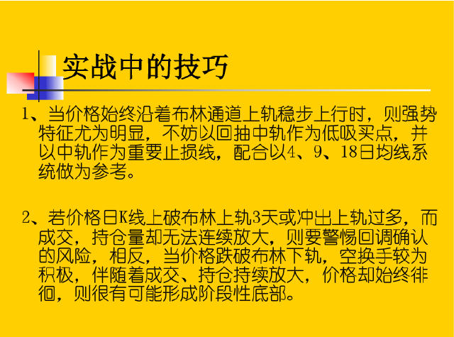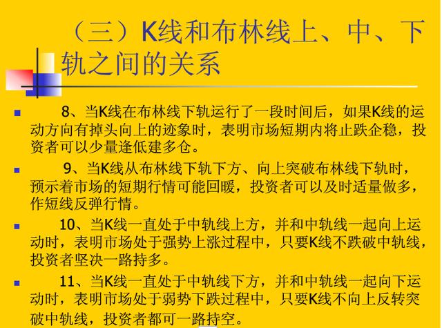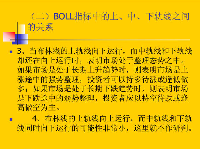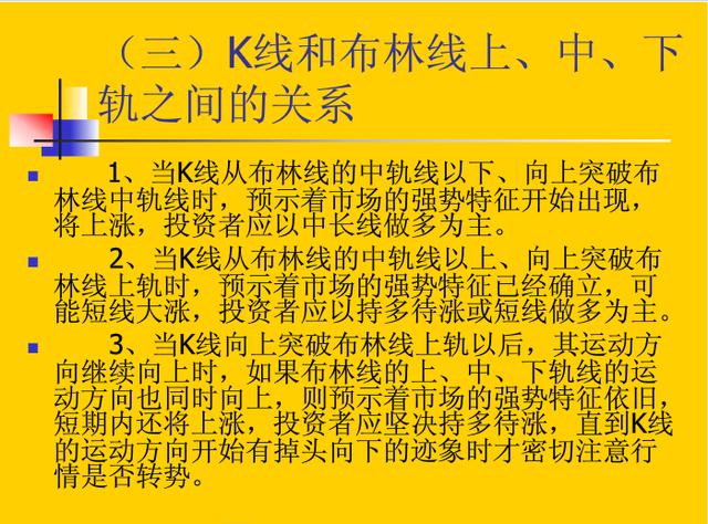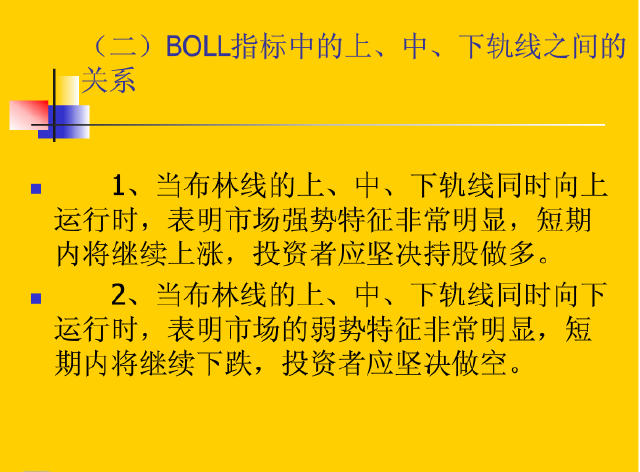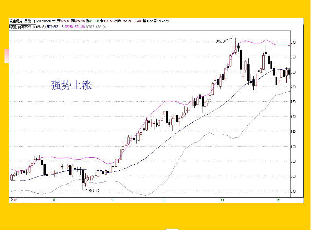 1、当布林线的上、中、下轨线同时向上运行时,表明市场强势特征非常明显,短期内将继续上涨,投资者应坚决做多。