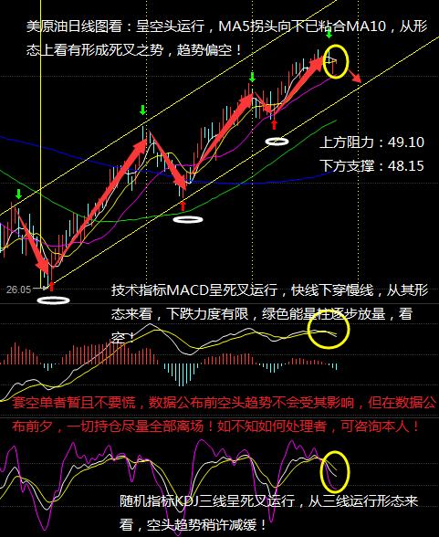 套空单者暂且不要慌,数据公布前空头趋势不会受其影响,但在数据公布前夕,一切持仓尽量全部离场;原因:其一,数据易出现偏差,利多走空,利空走高的例子不在少数,且数据公布前没有任何人能提前预知数据结果(很大不稳定性,不确定因素)。其二,虽目前是空头趋势,但数据公布后,美原油大幅拉升,可能会扭转当前趋势,而一旦被扭转,其结果必将非常惨痛,理性看待金钱诱惑,切勿将资金置于风口浪尖,要以投资人的眼光看待市场,而不是赌徒!同样,手上持有多单者更要注意,如果数据利空了呢?