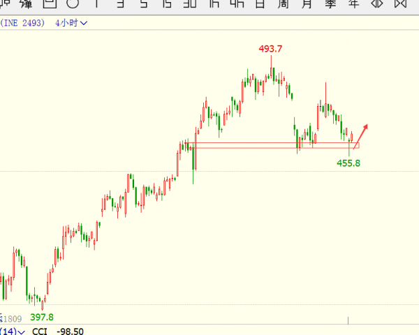 上海油一直表现的都比国际原油价格强势,对比下最近的美原油跌幅和上海油的跌幅就可以看的出来,那么我们思路还是清楚的就是可以开始择机做多了,后市还要看新高的机会的。想想咱们的汽油什么价格就知道为什么还是看涨了。【撰稿人:李兴淼】