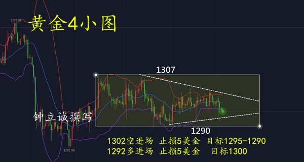 1292附近多进场 止损5 目标1300