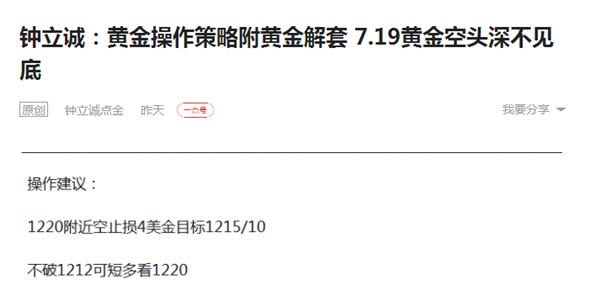 市场对你不公平,市场永远是留给那百分之20的人,你不去当那百分之20的人,还有什么理由说自己是对的?你抱怨的时候,他人都已经数币到手软了。现在黄金空头正得意洋洋的在挥旗呐喊。放下执念,放下怨恨,跟上7月的收益计划,下一个 就是你。