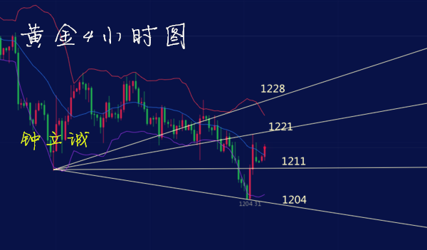 4小时上,有V型反转的迹象。但是上方依旧是重重阻力,首先1218的突破企稳,上破后,行情若继续走强,后续行情可以回撤1218附近做多黄金;再者上方1230二重阻力,需要突破,对于确定趋势我们还是的关注1236双顶压力,金价在收敛三角下轨附近受到支撑之后温和反弹,RSI目前止跌,现震荡交投于中轴下方附近,尽管MA均线以及MACD走势都较为承压,但是目前KD指标已经跌至超卖水平,且跌势暂缓,而小时显示KD指标自超卖水平反弹,这暗示金价短线有反弹的空间。周初操作上钟立诚个人建议低多为主,高空为辅。