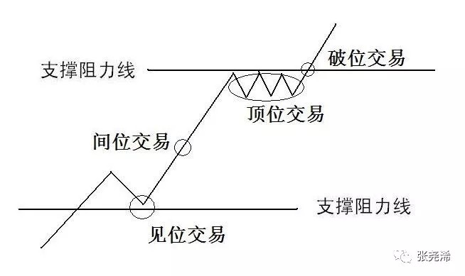 支撑阻力位的4种交易策略:见位交易、破位交易、顶位交易、间位交易。