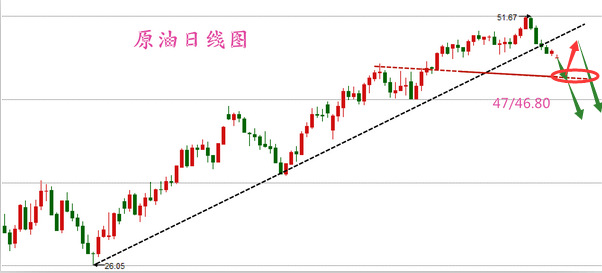 对于原油,昨日公布的EIA原油库存是-93.3,高于预期-213.5,其中设备利用率90.2,低于预期91.3,这也是昨日原油数据出炉之后,原油上涨至48.72的高位后快速回落至47.29的新低位置,原油亚盘小幅盘整于47.29到47.74之间,从目前走势看在下方46.77附近形成支撑之后会有小幅反弹。但原油日内已下跌0.54美元,47美元整数关口或形成强势反弹。目前技术指标MACD双线粘合,KD指标再次形成死叉下行。美盘继续看跌。