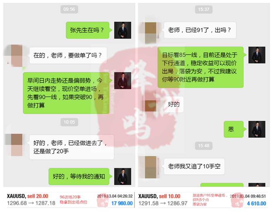 周五的非农本人也是提前布局,张先生果断进场,完美把握非农的止盈点位,获利出局,落袋为安,有的人说资金量大,在市场容易赚到钱,错,可以赚到钱的不是钱,而是你的操作,你的思想,是否有专业的老师进行指导,老师指导你是否配合,时候严格执行操作,该进场绝不犹豫,该离场也不惋惜,只有好的配合,才能驰骋黄金市场,盈利满盈。