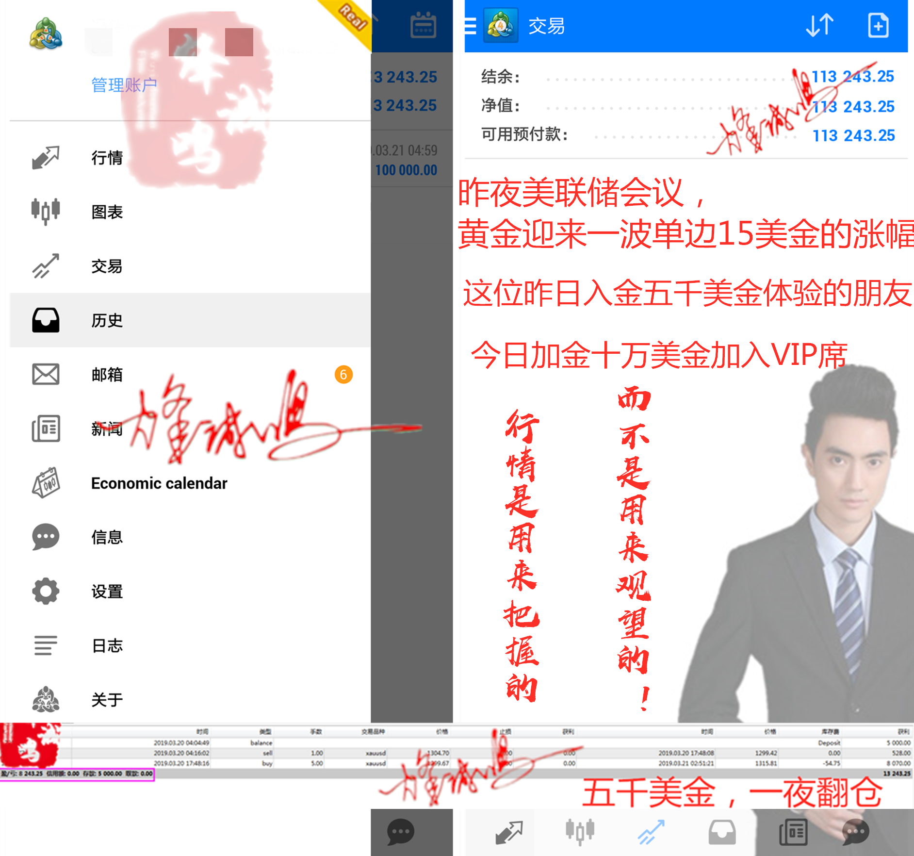 李先生周三早间入金5千美金,刚好碰上美联储,结果一夜翻仓,次日直接加金十万美金,一夜翻仓是实力的体现,行情不分早晚,不分大小,只要有收益就是大行情,只要稳健就能翻仓,行情是用来把握的,而不是用来观望的。