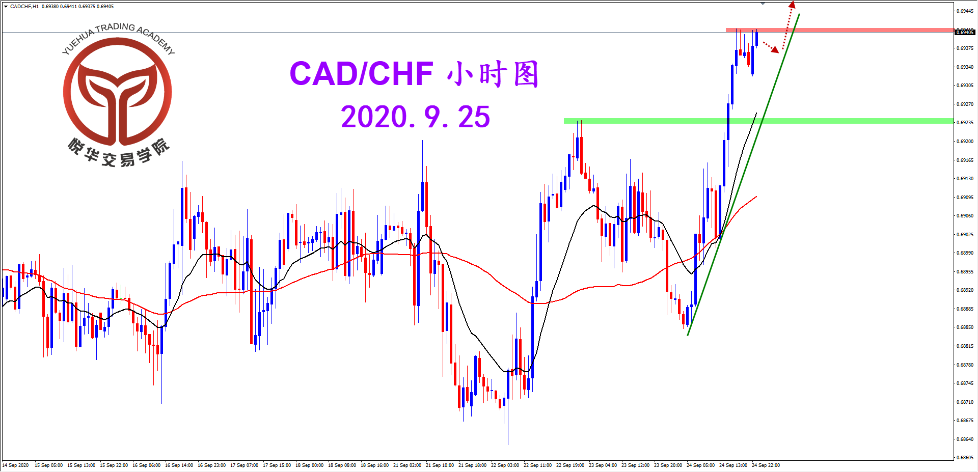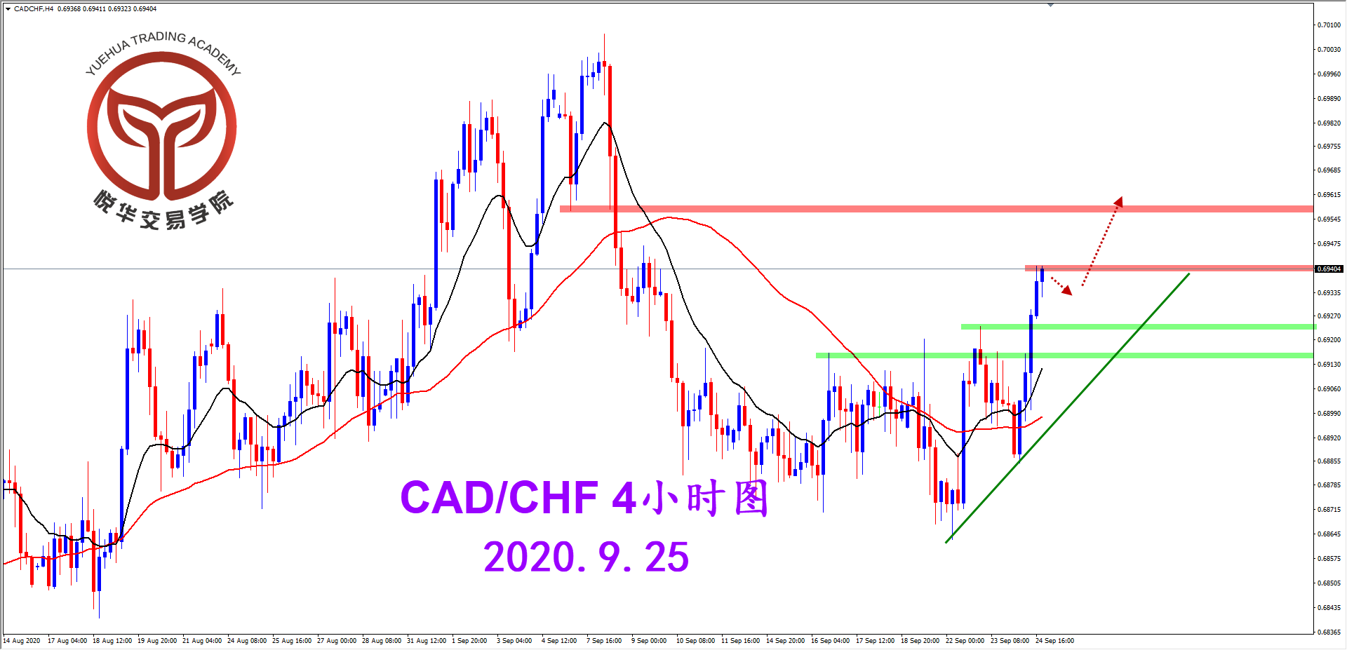 加瑞天图,昨天行情突破短期0.6921水平压力位置收出阳线形态,日内有机会继续向上测试到拐点压力线一带,虽然空间不多但如果有合理机会也是可以考虑关注的,而如果行情能够强势突破压力线那么大概率可以看到0.7000一带。