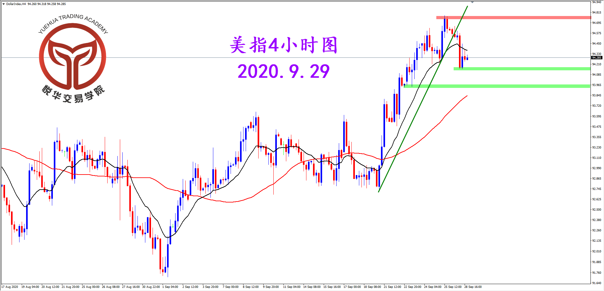 美指短线正在调整,并且短线拉高出货明显而且也跌破了4小时级别趋势线,小时级别形成了空头流向,大小周期方向分化严重,投资者谨慎观望为主,等待市场调整完毕坚决阳线拉升后关注后续的多头机会。