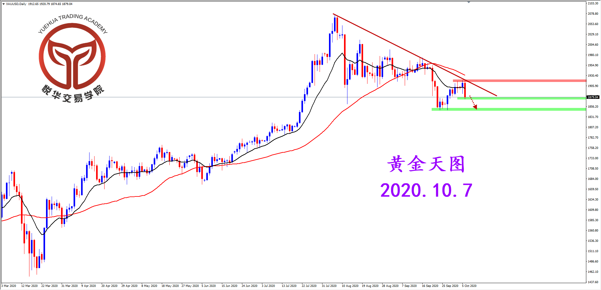 现货黄金天图,昨天行情在关键压力位置附近遇阻收出坚决阴线,日内的行情大概率会凭借坚决阴线继续下跌,适当关注一次调整后的空头机会,目标位置看前期低点附近。