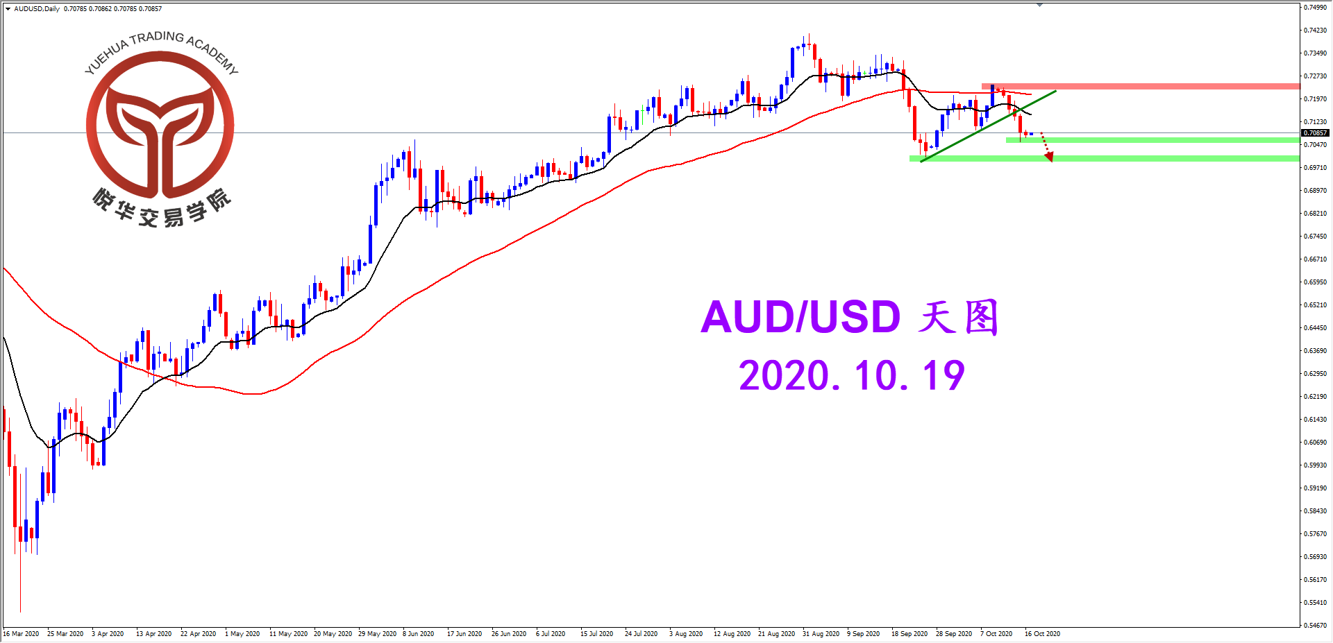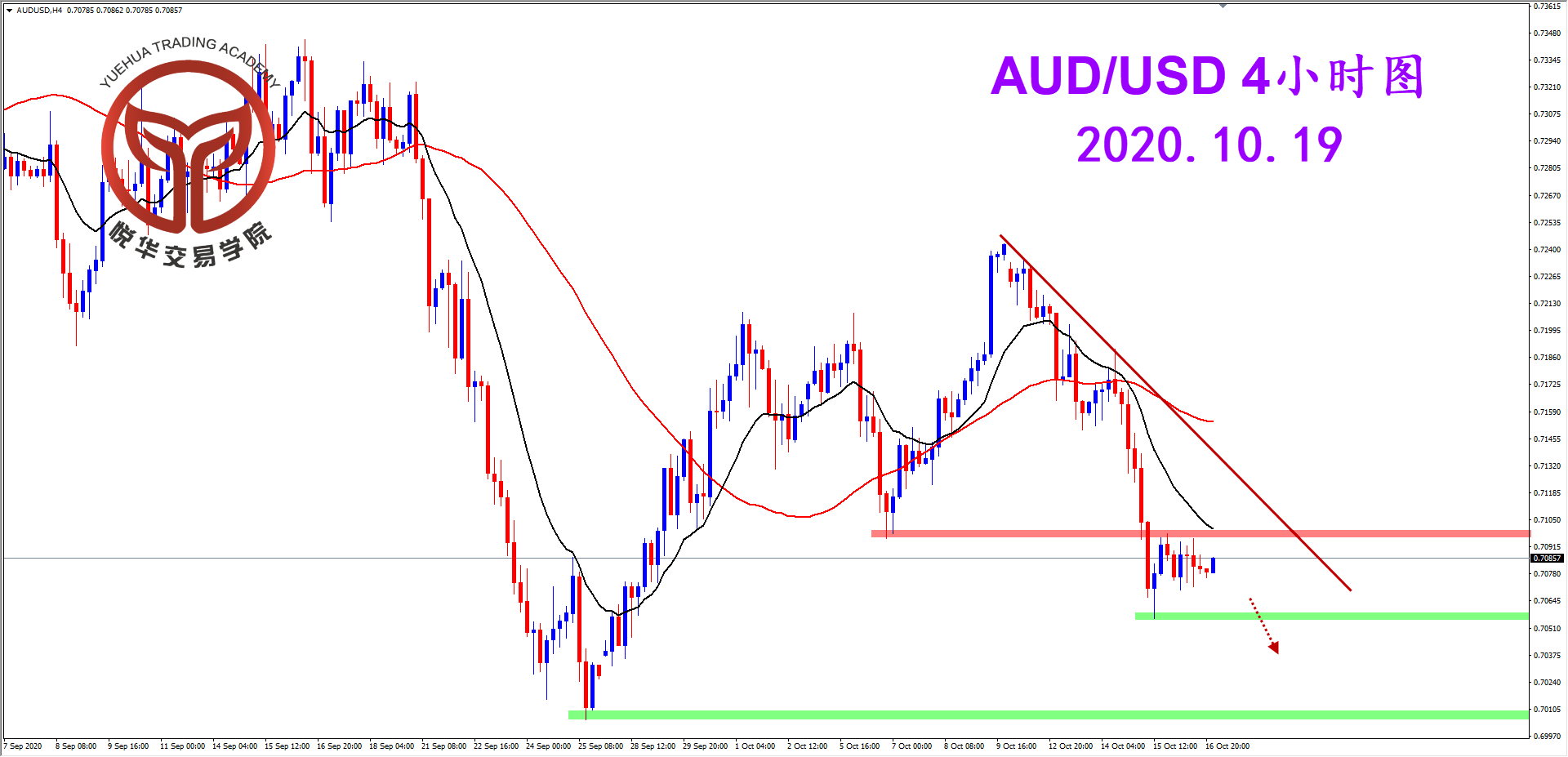 空头思路,等待行情调整结束在小时级别坚决阴线跌破0.7055后的空头机会,目标位置先看0.7000一带,如能坚决跌破可以持有看更多空间。