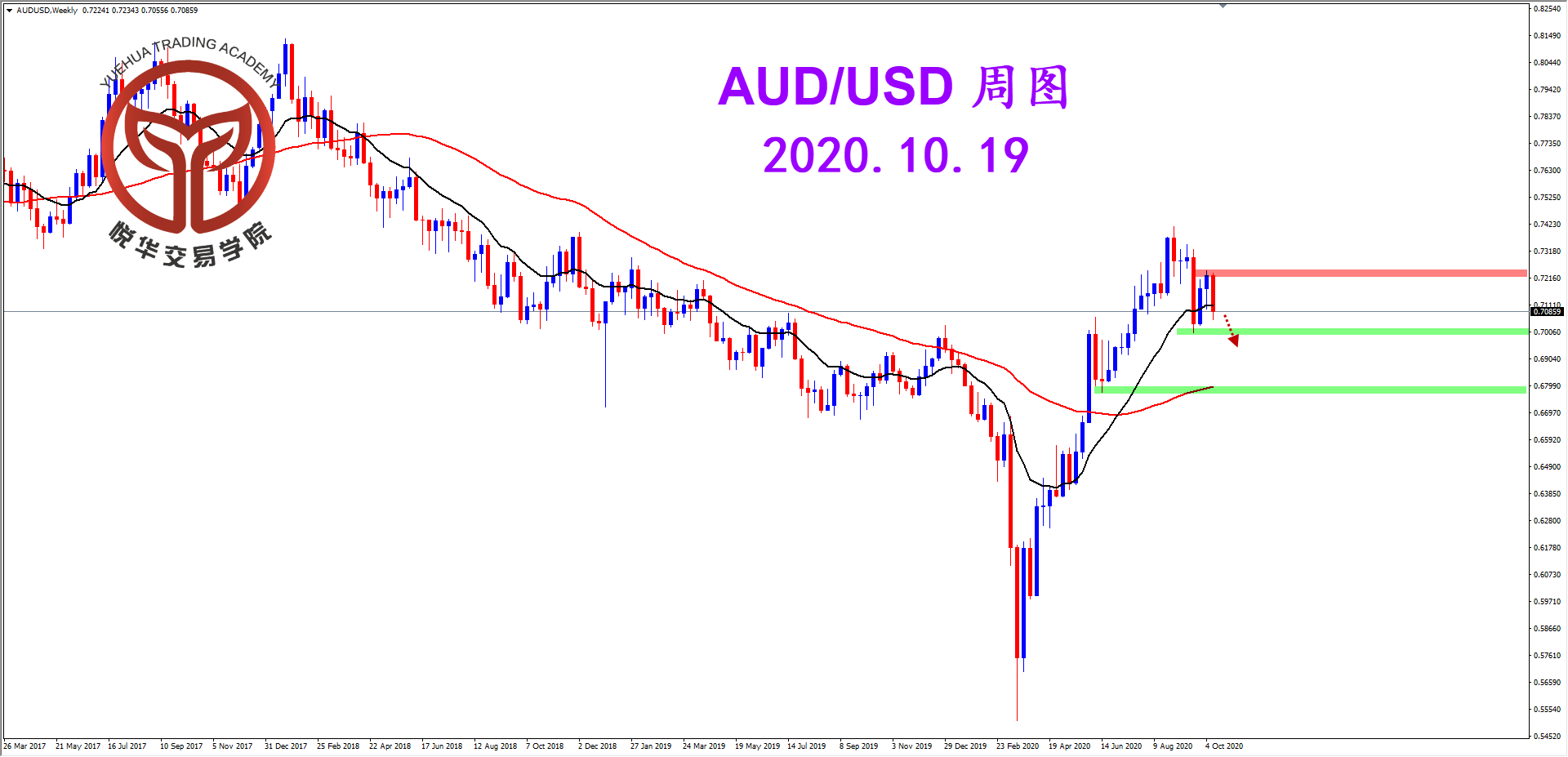 澳美周图,上周行情收出较为坚决阴线形态,符合总体预期,后市行情空头占据主导有望继续走弱,关注调整后的空头机会,如能坚决跌破0.7000的话可以看更多空间。