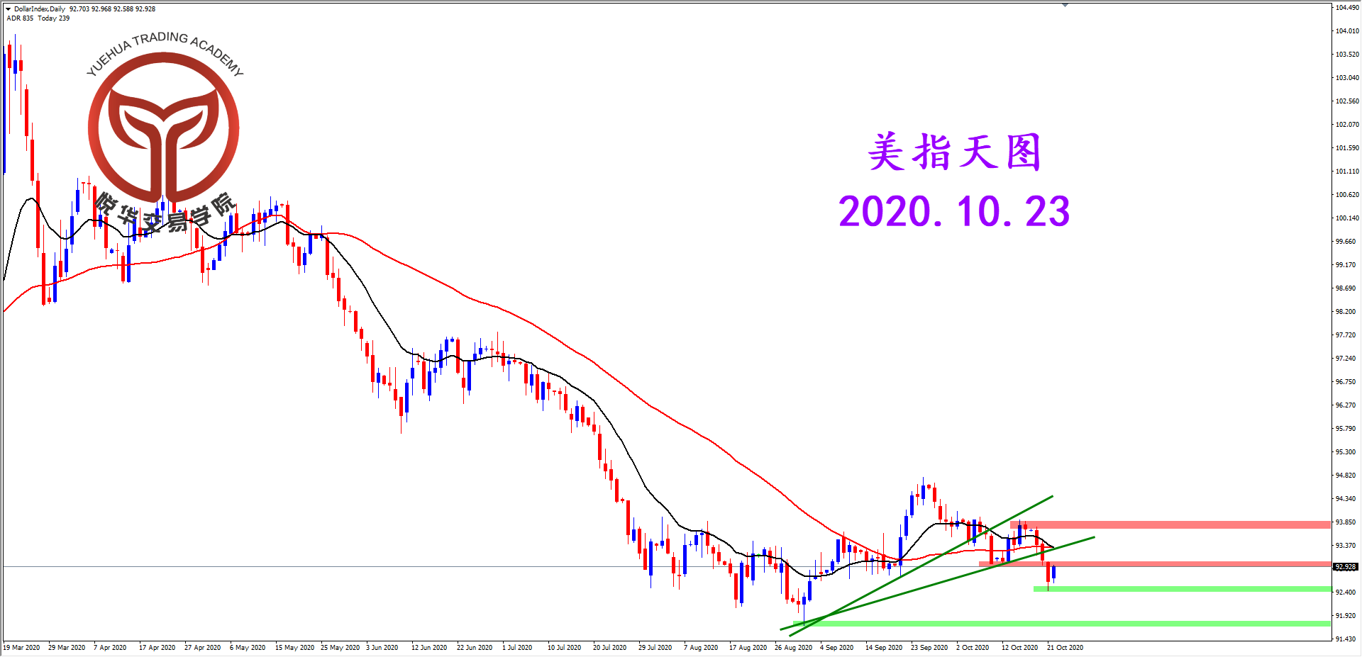 美指天图,行情经过三天的下跌并且跌破了水平支撑位置以及支撑线,但昨日的空头表现极差,市场完全失去了方向,陷入了震荡反弹的走势里面,暂时不能再去关注空头,日内谨慎观望为主。