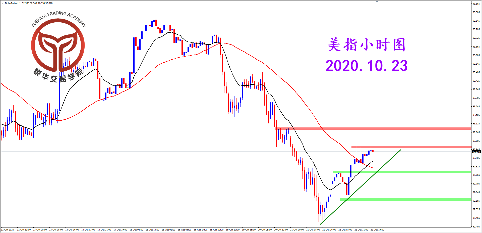 美指小时图,连续的反弹让市场形成了短线上升趋势,后市行情也可能依托该支撑线而继续震荡上行,由于不是多头方向且上方压力重重,不建议去关注美元多头。