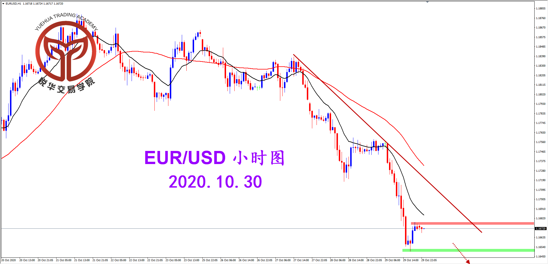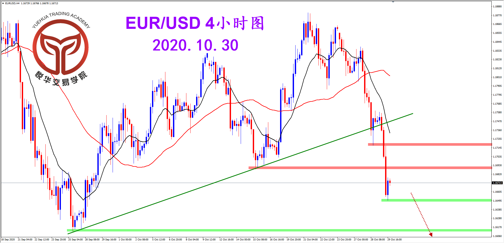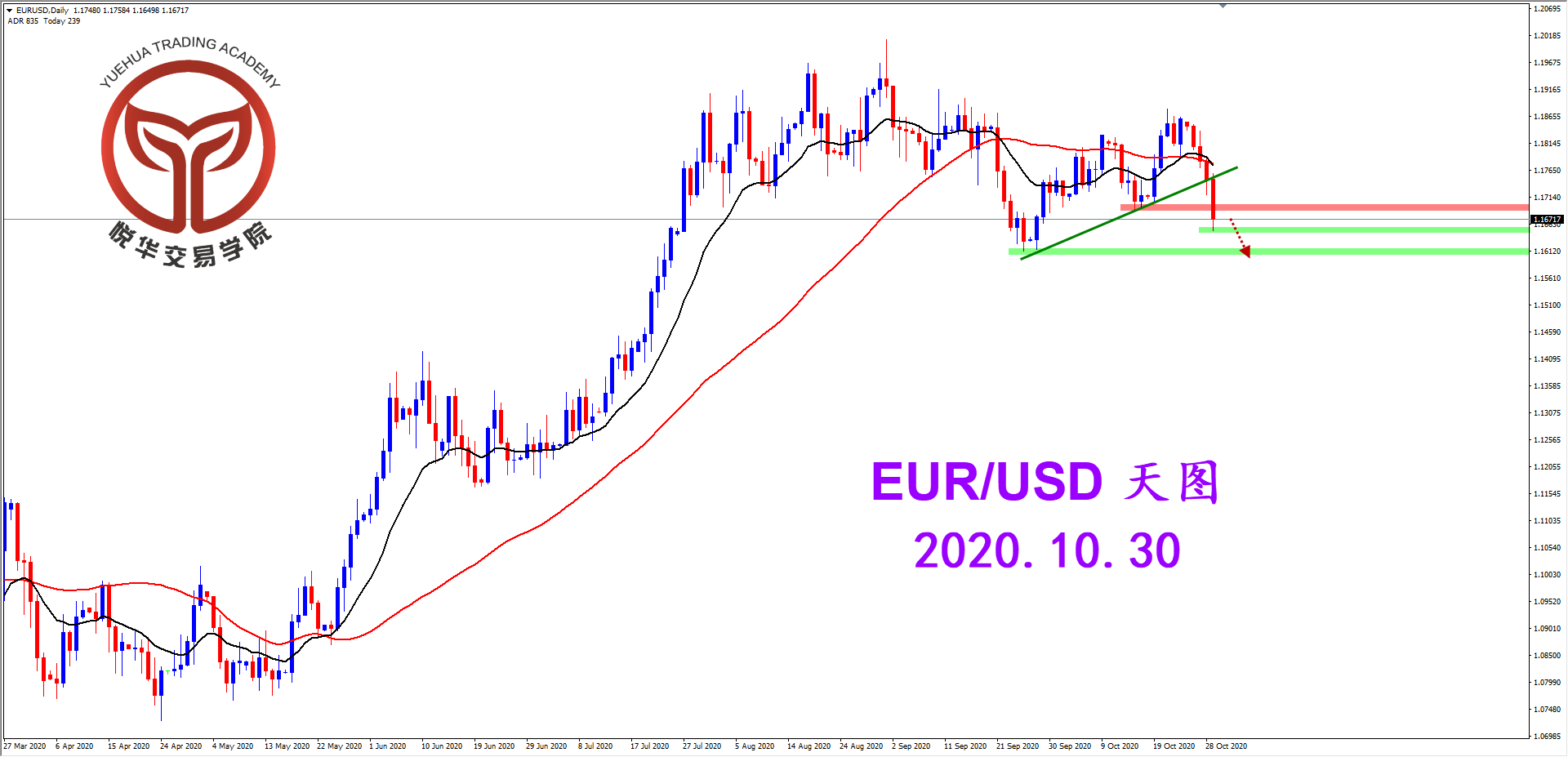 欧美天图,昨天行情收出坚决阴线,跌破支撑线以及水平支撑位置,奠定了空头基调,后市行情有继续走弱的机会,等待调整后关注破位空头。