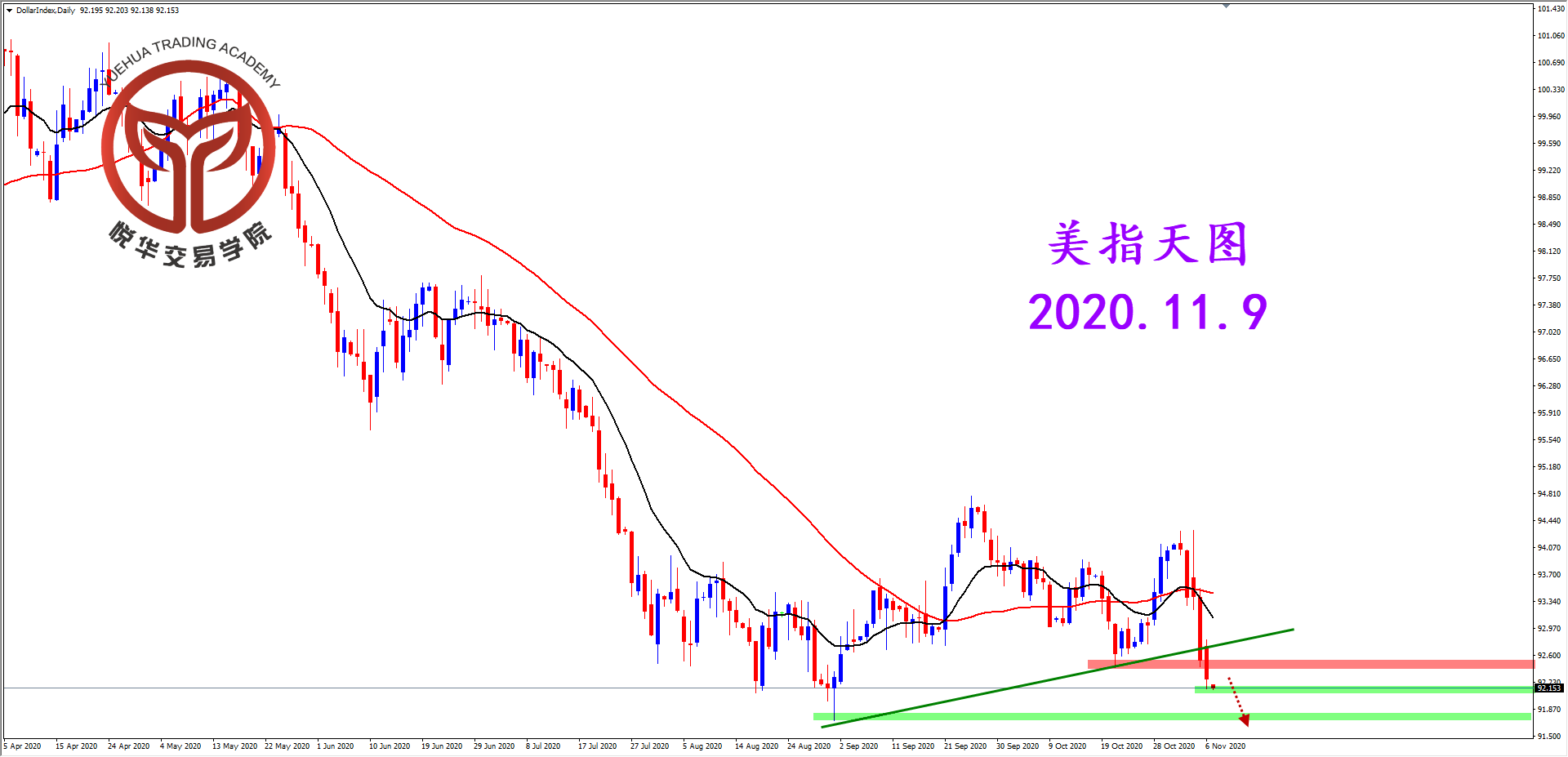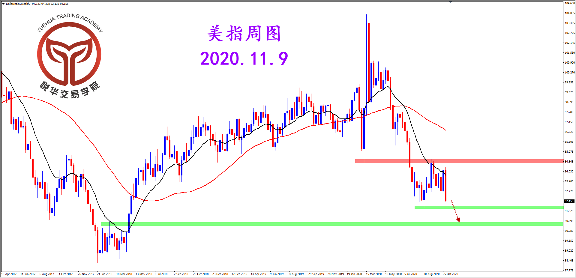 美国大选在周末最终尘埃落定,符合我们之前对于最终结果公布时间的预期,如果在各州的法律层面没有什么大的冲突的话那么在明年的1月20日拜登将会宣誓就职。而美指从技术层面来看空头方向非常明显,只要行情能够按现有情况发展的话甚至有跌破周线级别的91.73支撑位置的可能性,而一旦跌破的话下方会有更多空间。