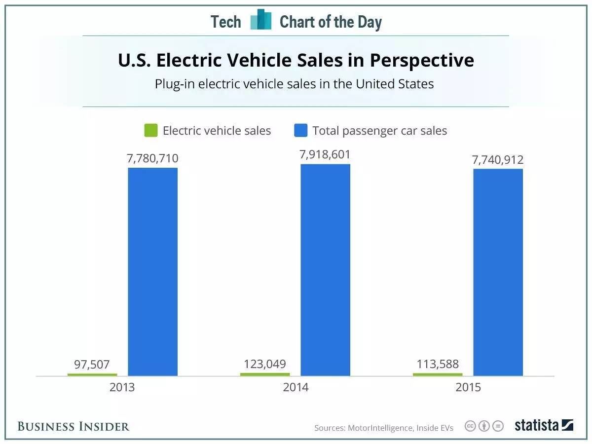 美国2015年全部汽车销售量是1760万辆,而电动汽车只卖了10万辆。中国现在汽车的总保有量是1.65亿辆,而电动汽车保有量只有30万辆,所占的比例连千分之二都不到。