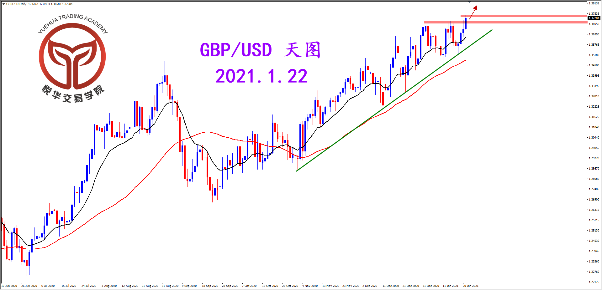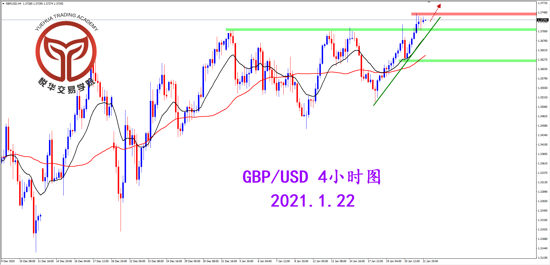 镑美天图,昨天行情收出破位阳线,勉强突破了前期高点1.3709的水平压力位置,形势开始有利于多头发展,日内适当的谨慎的关注调整后的多头机会。