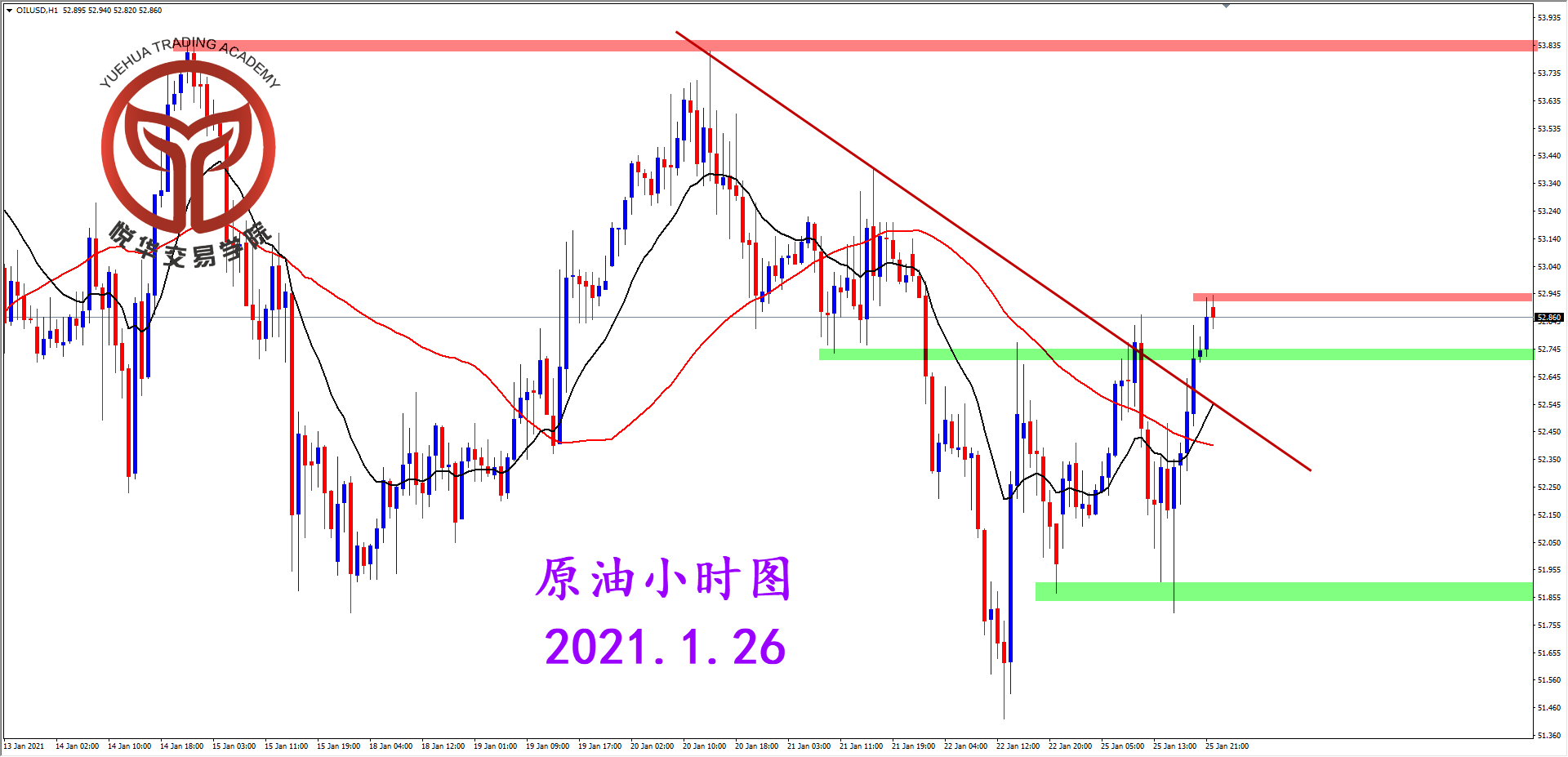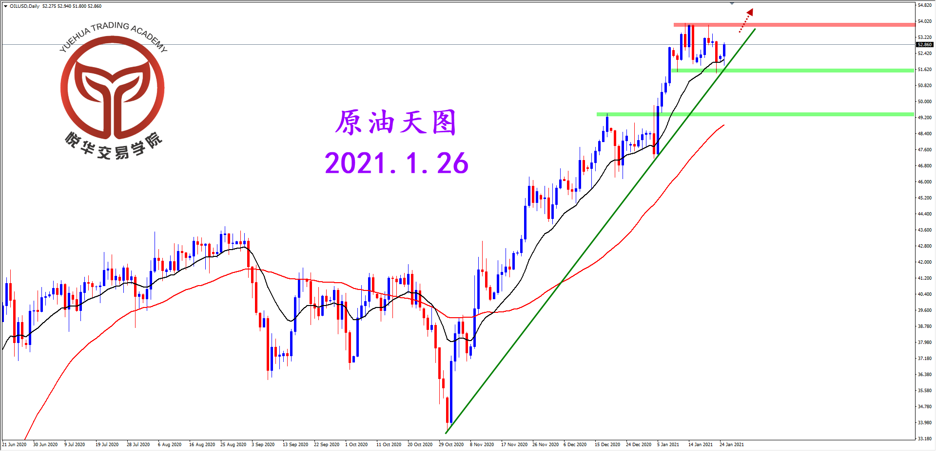 原油天图,目前行情整体仍旧保持多头趋势,趋势线与15EMA形成有效支撑,而且高位调整后有企稳表现,但是还是需要投资者耐心等待坚决阳线突破并且站稳53.91后才能开始关注多头机会。